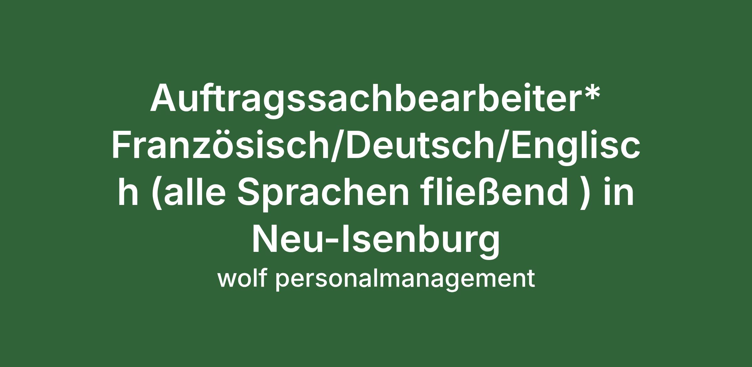 Auftragssachbearbeiter* Französisch/Deutsch/Englisch (alle Sprachen fließend ) in Neu-Isenburg