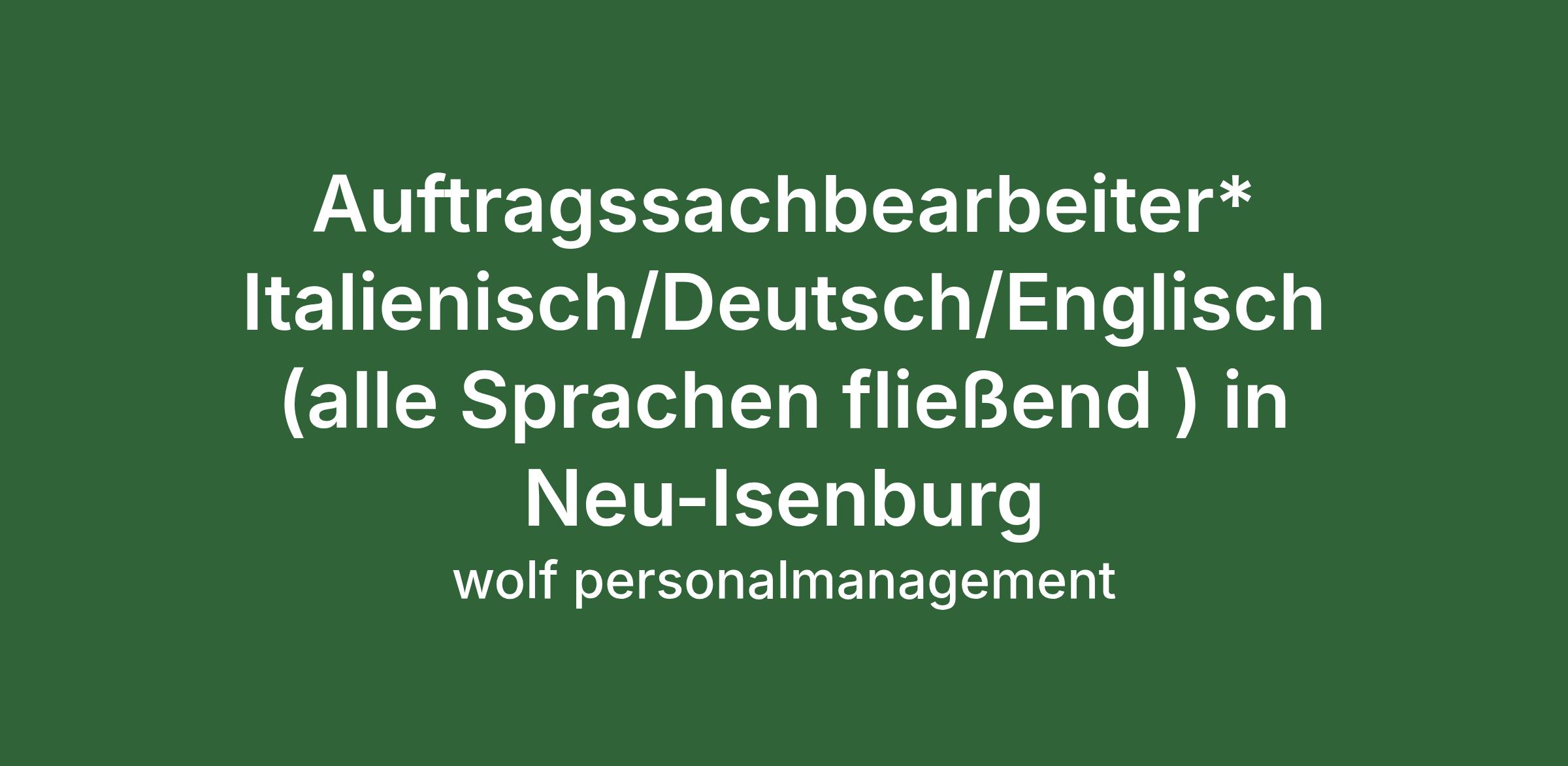 Auftragssachbearbeiter* Italienisch/Deutsch/Englisch (alle Sprachen fließend ) in Neu-Isenburg