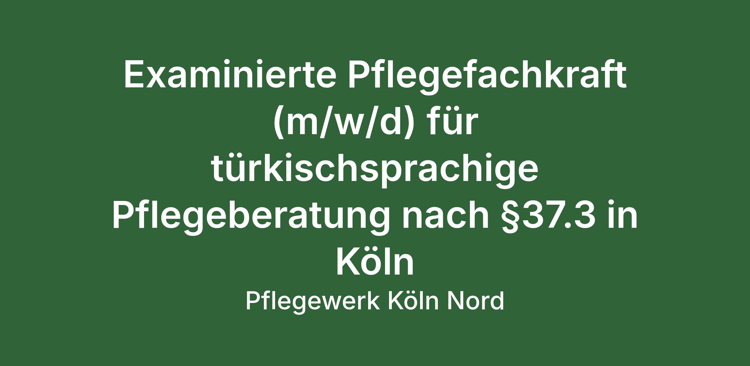 Wir suchen ab sofort 3-jährige examinierte Pflegefachkräfte in Teilzeit (20h/ Woche), die Pflegeberatungen nach § 37.3 SGB XI und § 45 SGB XI für unseren Standort in Köln und Umgebung in türkischer Sprache durchführen.
