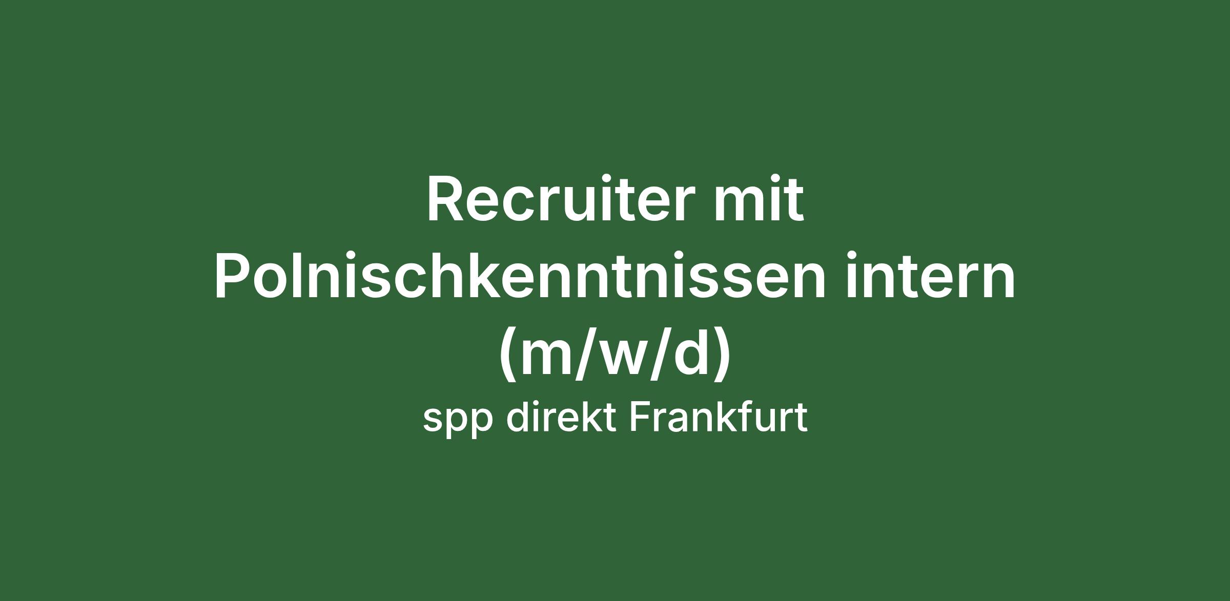 Dann haben wir die perfekte Position für dich, denn wir suchen ab sofort einen Recruiter intern (m/w/d) mit Fokus auf polnisches Recruiting für unsere Standorte in Frankfurt am Main, Offenbach am Main, Mainz, und Darmstadt.