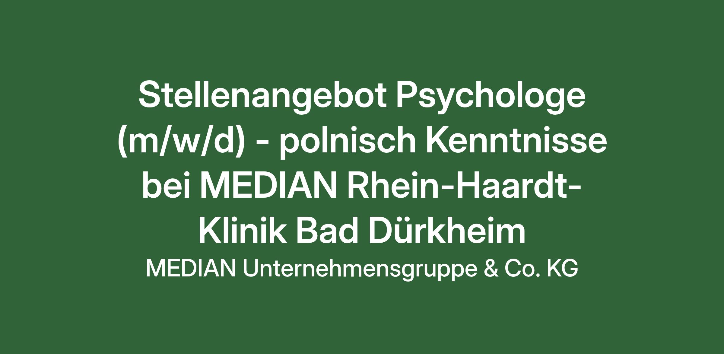 Stellenangebot Psychologe (m/w/d) - polnisch Kenntnisse bei MEDIAN Rhein-Haardt-Klinik Bad Dürkheim
