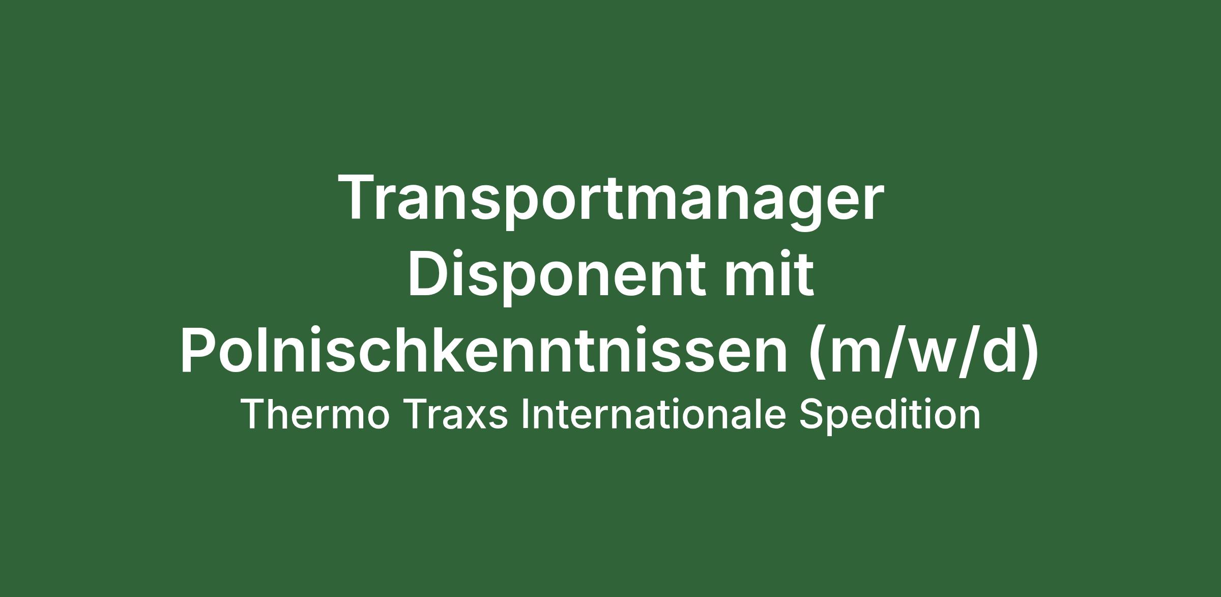 Transportmanager Disponent mit Polnischkenntnissen (m/w/d)