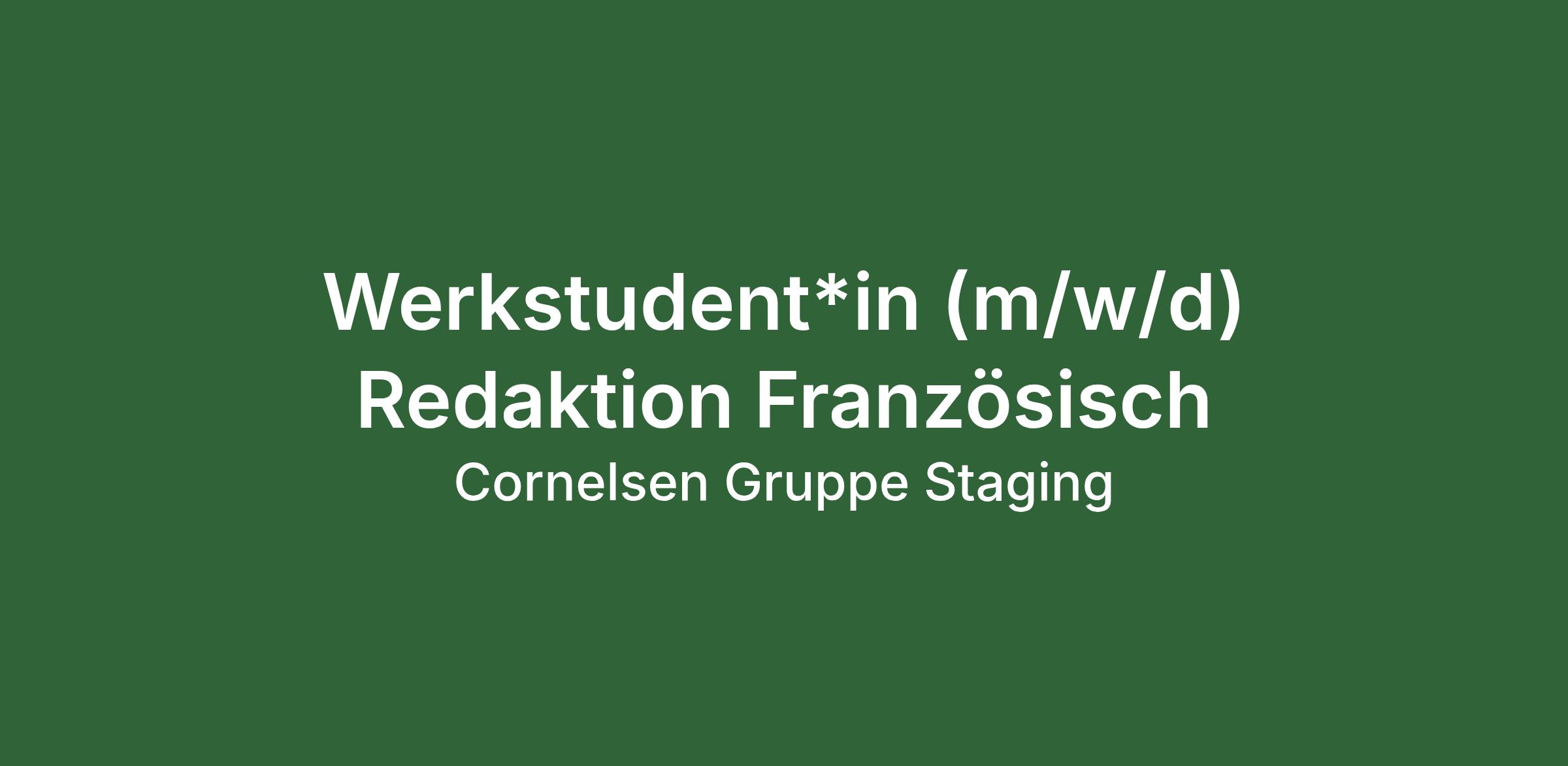 Für unser Team Redaktion Französisch suchen wir am Standort Berlin befristet bis zum 30.04.2027 in Teilzeit (bis zu 20 Stunden/Woche) zum nächstmöglichen Zeitpunkt eine*n Werkstudent*in (m/w/d).